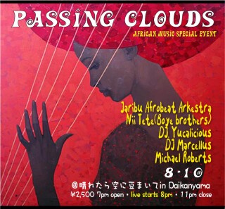 東京の代官山で、Passing Cloudsの魂を受け継ぎ、イベントを開催します。代官山で楽しい夏のひと時を一緒に過ごしましょう!アフロビートのリズムにのって踊りましょう!