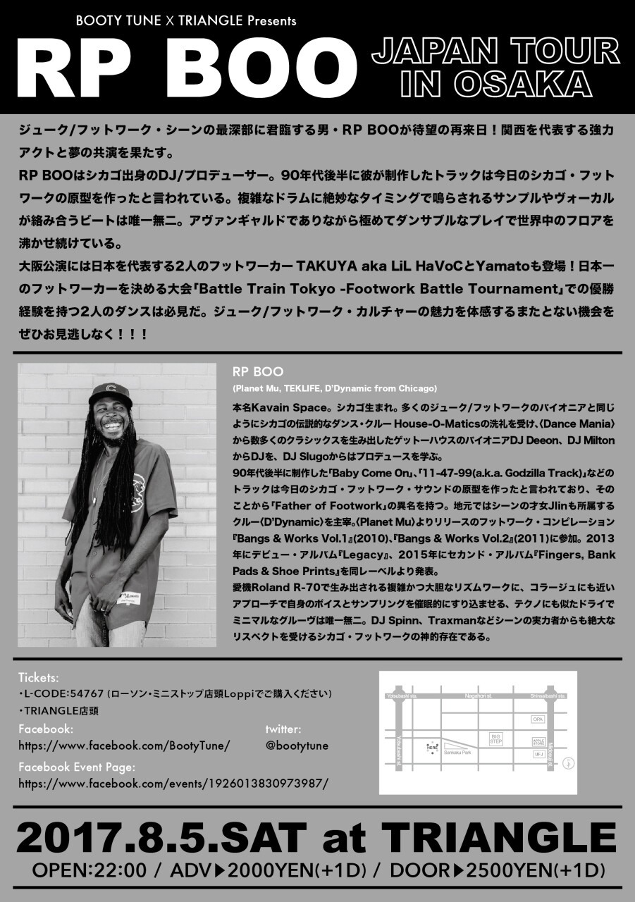 ジューク/フットワーク·シーンの最深部に君臨する男・RP BOOが待望の再来日!関西を代表する強力