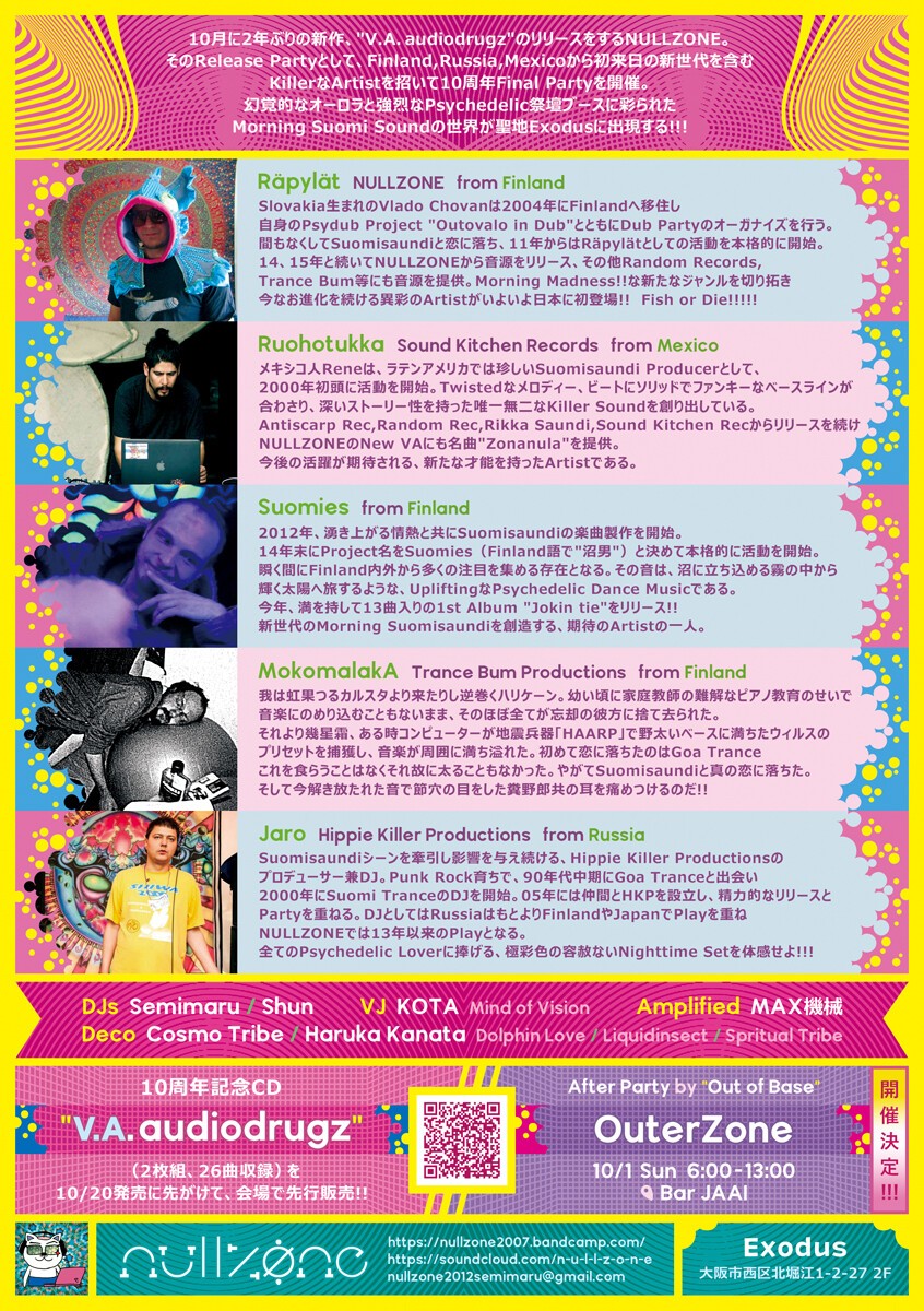 そのRelease Partyとして、Finland,Russia,Mexicoから初来日の新世代を含むKillerなArtistを招いて10周年Final Partyを開催。