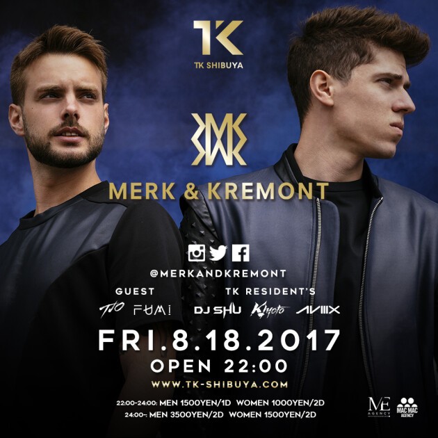 今のメインストリームシーンには外せない大人気DJデュオ”Merk&Kremont”の来日公演が遂に決定!