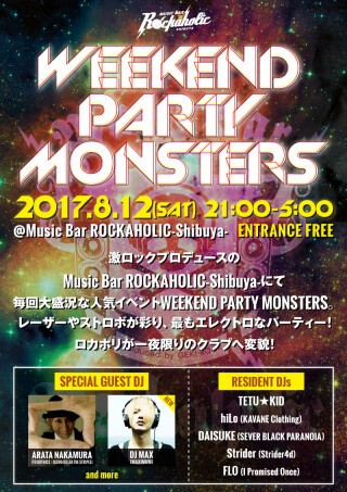 EDM x Rock x Loud WEEKEND PARTY MONSTERS 2017.8.12(Sat) 21:00~5:00 ENTRANCE FREE