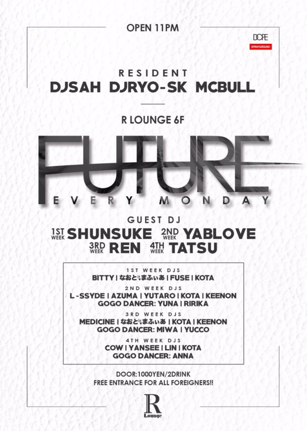 ENTRANCE (MEN) ¥2,000 / 1D (WOMEN) ¥1,000 / 2D