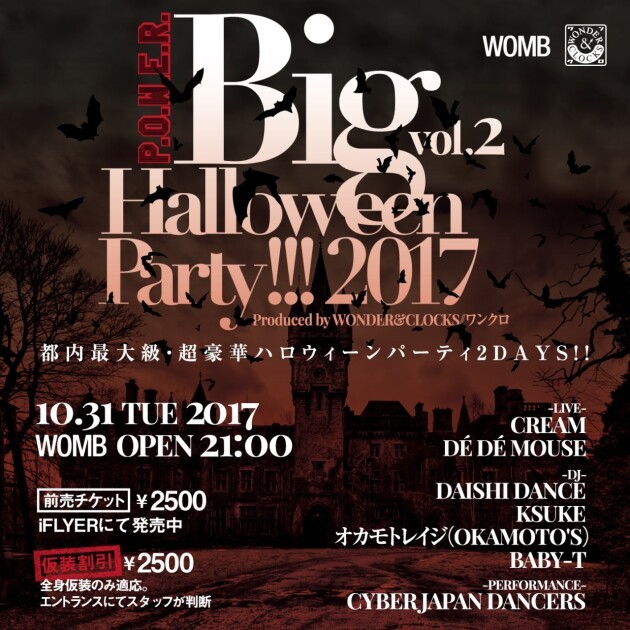 CREAMやDAISHI DANCE、KSUKEやオカモトレイジ、CYBERJAPAN DANCERSがハロウィーン本番当日のWOMBに登場!