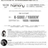 10月のHARMONYは大阪南堀江の "SOCORE FACTORY" にて "FREAK" と"Rejoice"それぞれレギュラーパーティーを開催中の "YASU" と " HARUNA" が来てくれます。