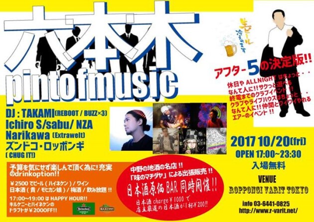 DJ: TAKAMI (REBOOT / BUZZ×3) / Ichiro S / sabu / NZA / NARIKAWA(Extrawelt) / ズンドコ・ロッポンギ(CHUG IT!)