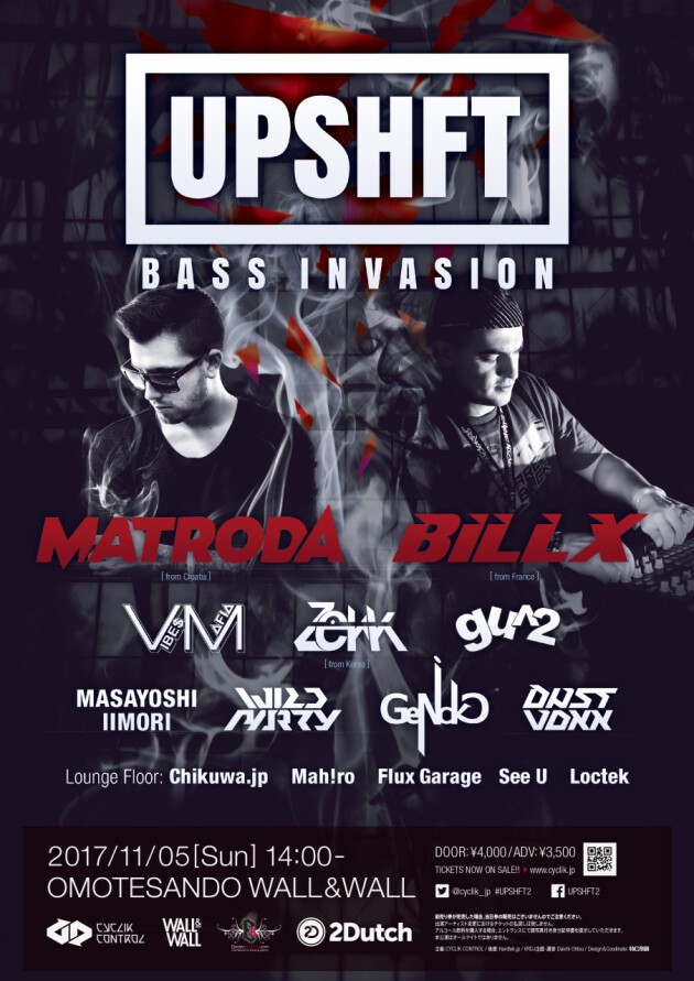 ハードテック × ベースミュージックの異色混合パーティーUPSHFT第2回目が表参道WALL&WALLにて開催!! フランスから言わずと知れたHARDTEK界一の立役者「Billx」と BASSHOUSE/G-HOUSEの新鋭21歳「MATRODA」がクロアチアから初来日!