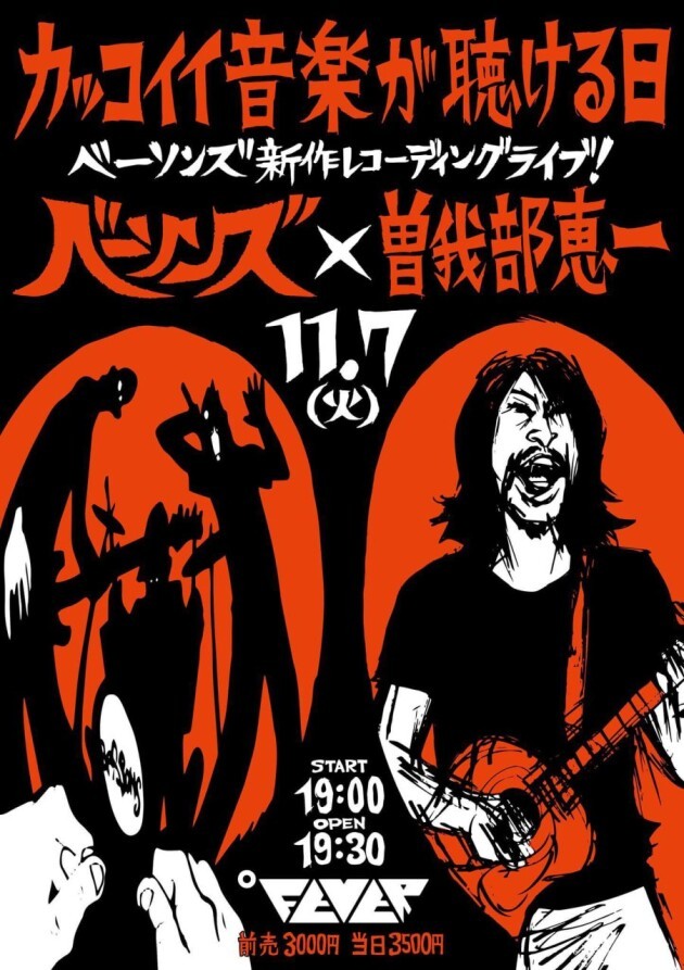 ドラムXベースXボーカルXダブ=ベーソンズ!ベーソンズの真骨頂はライブ。新作はライブ録音と宣言した彼らの「ライブレコーディングパーティー」が「カッコイイ音楽が聴ける日」だ!今回は曽我部恵一との2マンで開催。まったく違う音楽へのアプローチが織りなす空間・・・そこで響くのはカッコイイ音楽だけだ!