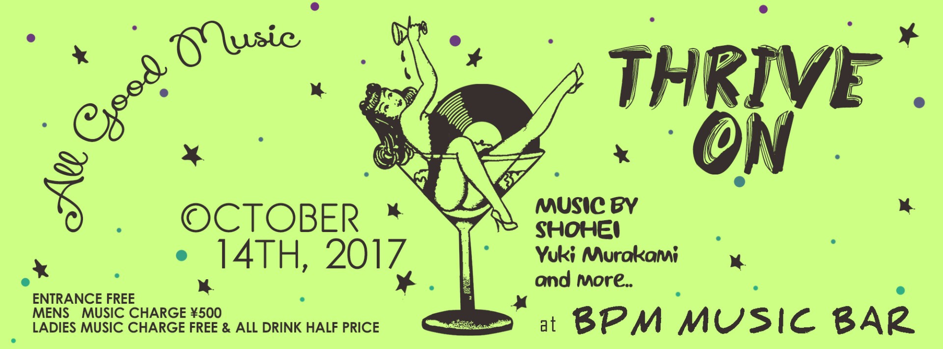 これからのダンスミュージックシーンを担っていくであろう若手DJによるサウンドをBGMに、毎月第2第4土曜に開催されるウィークエンドパーティ "THRIVE ON" 。