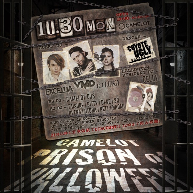 毎年大人気の渋谷CAMELOTのハロウィンイベント、今年は「監獄」をテーマに5日連続開催!期間中は毎日19時オープン!