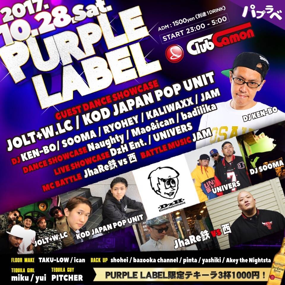 【PURPLE LABEL】10/28(土)☆GOOD MUSIC ONLY NIGHT『PURPLE LABEL』★★GUEST DANCE SHOWCASEにJOLT+W.LC、KOD JAPAN POP UNITが登場☆☆パプラベならではのハイクオリティーなアーティストやダンサー多数出演★★