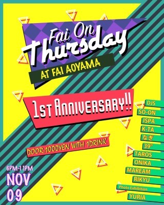 "Fai On Thursday"は昨年11月に"AO BAR"としてスタート。2017年1月に"Fai On Thursday"と名前を変え、ハウスやアーバンミュージックを中心にした選曲展開でラウンジパーティとは思えない盛り上がりを見せてきた。