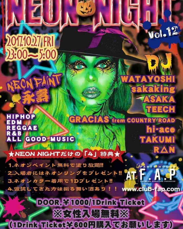 10.27 (fri) @F.A.P【NEON HALLOWEEN NIGHT vol.12 】
