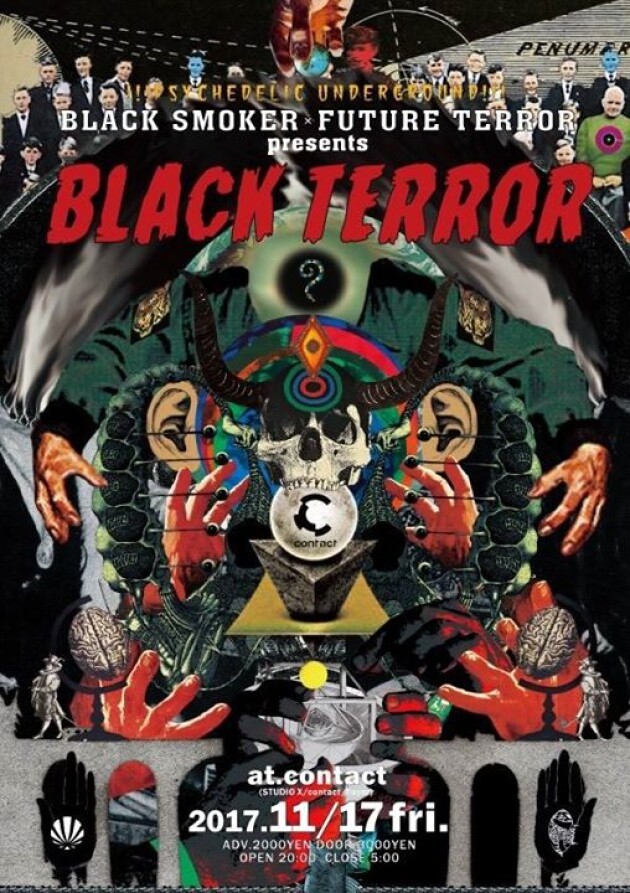 "FUTURE TERROR", run by DJ NOBU, has long been running underground dance music scene in Japan and of course their home base Chiba. This time they will team up with "BLACK SMOKER RECORDS" known for their infamous party “EL NINO”. For the past 20 years they have made a huge impact with their intensity and diversity. The two crews will team up for the first time in 2 years to bring you a monstrous party <BLACK TERROR>. Doors open at 8PM and the party will go on for 9 hours. From Belgium, they have invited the Venezuelan artist Bear Bones for a live set, collaboration live set by Keiji Haino and Merzbow, and to top it off KILLER BONG and DJ NOBU will be performing a live session. From the decoration, lighting, visuals, and food, this night is bound to please your five senses and more to the fullest. Always embarking on new journeys, BLACK SMOKER and FUTURE TERROR is something to be experienced.