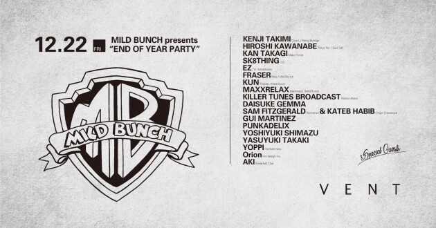 TripsterのKun率いるMild Bunch Sound Systemが豪華アーティストを迎えて開催する恒例の大忘年が12月22日にVENTで開催決定!!Kenji Takimi (Crue-L / Being Borings)とHiroshi Kawanabe (Tokyo No.1 Soul Set)やSK8THING (C.E)とKan Takagi (Major Force)なども参加し、多彩なジャンルで活躍する大勢のクリエイター&アーティストたちが集まる一夜に!東京のカルチャーを牽引する最重要人物たちが集う大忘年会をお見逃しなく