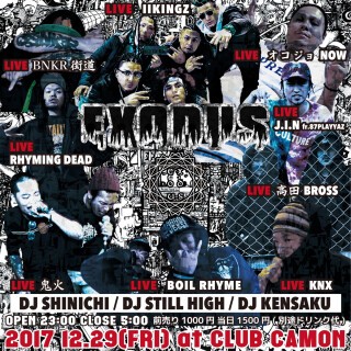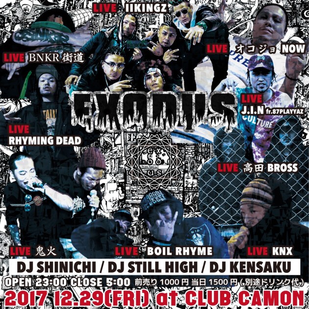 【EXODUS】12/29(金)☆オコジョNOW、BOIL RHYME、鬼火、KNX、J.I.N fr 87PLAYYAZなどHIP HOPアーティスト多数出演★★