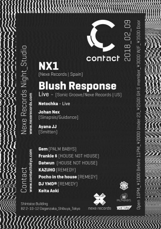 スペインはバルセロナに拠点を置くレーベルNexe Recordsと、長年に渡り彼らをサポートしてきたJohan Nexにより開催されるレーベル/コレクティブのショーケース。今回初来日となる、Nexe Recordsの看板アーティスト NX1のハイブリッドセットに加え、Adam X主宰のSonic GrooveなどからEBMやテクノにフォーカスした作品をリリースし、こちらも初来日となるBlush Responseがゲストとして登場。Contactフロアには、下北沢を拠点に活動するハウスミュージックコレクティブ House Not Houseプレゼンツにより、PALM BABYSのGem、そして若手ヴァイナル集団REMEDYクルーなど、ハウスミュージックを軸としてフリーレンジな音楽性を楽しめるフロアが出現する。