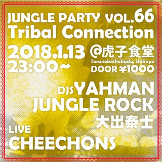 レゲエ/ダブ、ジャズ、ソウル、ファンク、ヒップホップ、ハウス、テクノ、レイヴ、世界中のローカル・リズムなど、色々な音の要素を吸収して、それを疾走感あふれるブレイクビーツと重低音に乗せ一気に放つ、音の密林へ誘う血湧き肉躍る雑食ダンスミュージック“ジャングル”を中心に熱い音を楽しめるパーティー、Tribal Connection。今回は、CHEECHONSがライヴで参加!