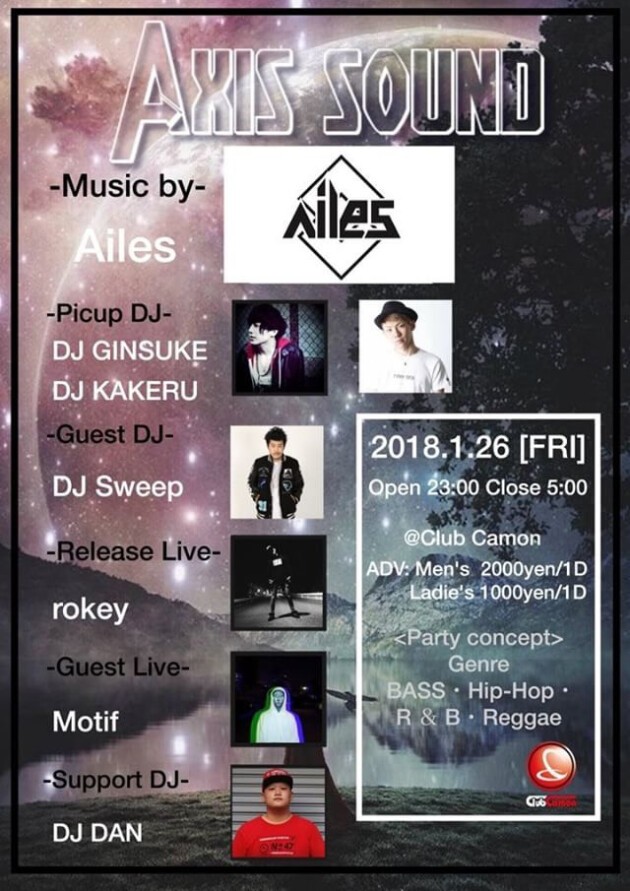 【AXIS SOUND】1/26(金)☆BASS MUSIC & HIP HOP PARTY『AXIS SOUND』☆☆RELEASE LIVEにrocky、GUEST LIVEにMotifが登場★★