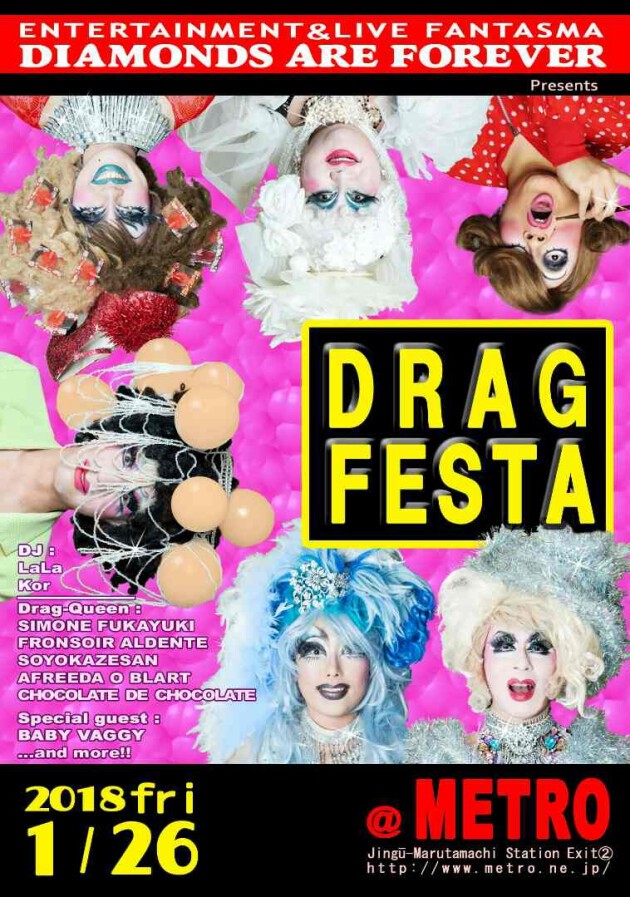 2018/1/26(Fri) DIAMONDS ARE FOREVER presents “DRAG FESTA”@CLUB-METRO