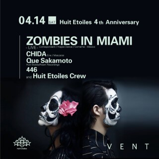 今回Zombies In Miamiが出演するのは、今年4周年を迎える東京のNu Discoシーンの指標パーティーHuit Etoiles。更にゲストとして彼等のレーベルメイトであり、世界へ誇るアーティストChidaがHuit Etoilesに初登場。