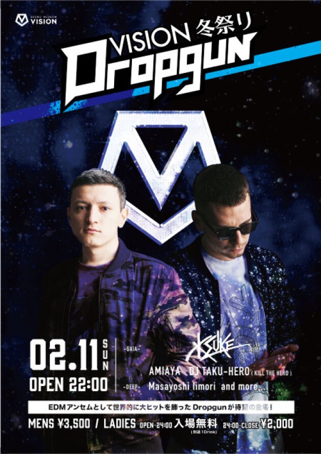 毎年恒例のVISION冬祭りをEDMのライジングサンDropgunを迎え今年も開催決定!