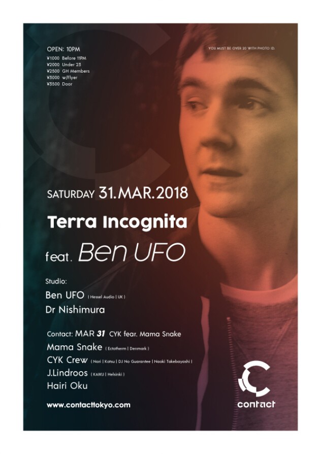 Ben UFOがStudio Xをジャックする一方で、Contactのホストを務めるのは東京を拠点とする気鋭のDJコレクティブ、CYK。アシッドとエレクトロの要素を忍ばせた無骨なハウスサウンドを好む彼らがゲストにMama Snakeを迎える。コペンハーゲンのApeiron Crewを率いるひとりである彼女は、この夜もテクノとエレクトロを駆使して激しさと暗鬱としたムードの同居するセットを繰り広げてくれるに違いない。
