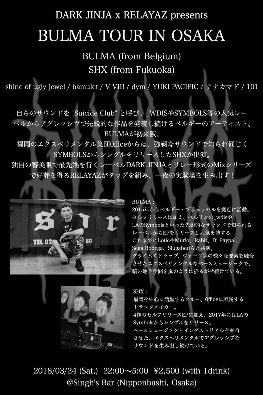 自らのサウンドを"Suicide Club"と呼び、_WDISやSYMBOLS等の人気レーベルからアグレッシヴで先鋭的な作品を発表し続けるベルギーのアーティスト、BULMAが初来阪。