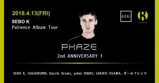 アニバーサリーパーティ第1回目となる今回は昨年11月にRekidsよりリリースしたニューアルバム『Patience』が好調なSEBO Kがリリースツアーの一環として4年ぶりの来日を果たす。