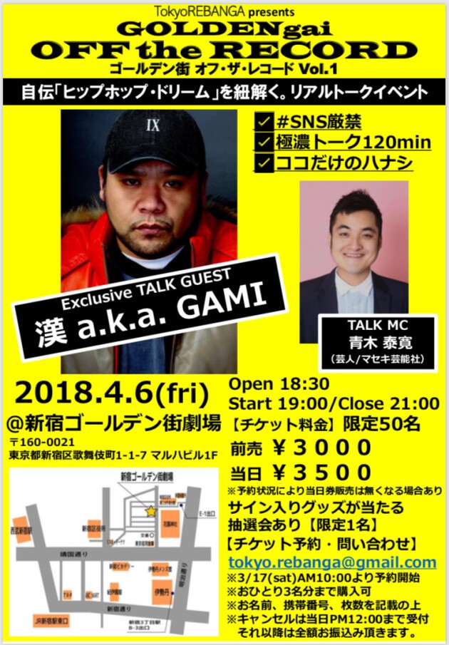 自伝「ヒップホップ・ドリーム」を紐解く。 リアルトークイベント!!