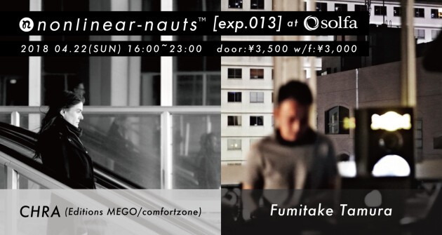電子音楽音響クラブサウンドを軸に実験的な取り組みや尖端的なスタイルを追求するアーティストのプラットフォームとなる『nonlinear-nautsノンリニアノーツ』が、オーストリア・ウィーンの名門電子音響レーベル"Editions MEGO"のPITA aka Peter Rehbergと共にエクスペリメンタルバンドとしても活動している《Christina Nemec a.k.a CHRA》、坂本龍一が主宰する"commmons"よりアルバム「BIRD」を発表するなど、常に挑戦的な作品のリリースを続けている《Fumitake Tamura》の両氏をメインアクトに迎え開催。