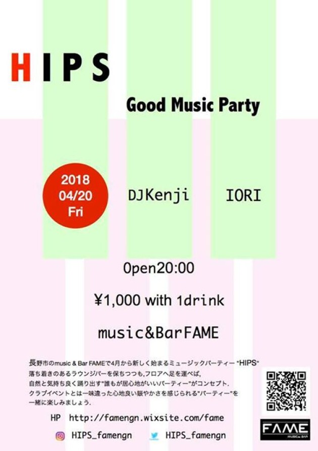長野市のmusic & Bar FAME で4月から新しく始まるミュージックパーティー"HIPS"