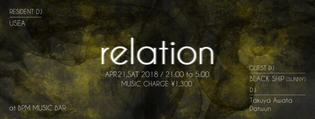 双子djユニットUSEAがレジデントを務めるハウス,テクノパーティ ”relation”。