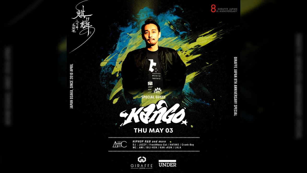 独自のジャンルレスなスタイルでファンを魅了し、日本のCLUBシーンを盛り上げ続けている「KANGO」がGIRAFFEに登場!