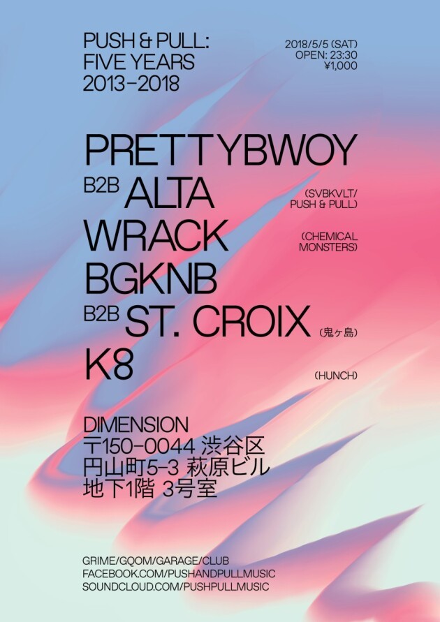 我々のお気に入りのDJ、またプロデューサーの一人であり、昨年SvbkvltよりGeneticsという素晴らしいEPをリリースしたPrettybwoyが、Push & Pullの共同創設者Altaと組んで戻ってくる。英国の感性を持つ先進的なクラブミュージックが期待できる。そして、我々は東京でアフロ-ポルトガルとラテンアメリカの特色を組み込んだ90-130bpmのクラブサウンドを主に広めているうちの一人である、Chemical MonstersのボスWrackも迎えた。WrackはNaafi、RADD LOUNGE、JEROMEやそのほかとのアルバム参加、ミックス提供、コラボレーション等を行っており、NTSやRadarでもゲスト出演している。