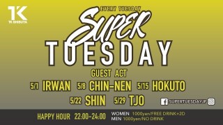 東京の遊びの中心「渋谷」の新たな遊び場「TK SHIBUYA」が、毎週火曜日に開催するパーティー「SUPER TUESDAY」!この「スパチュー」ではEDMは勿論、HIP HOPやベースMUSIC等、今、世界で主流の音楽がジャンルレスに体感できる!豪華なレギュラーDJ陣に加え毎週多彩なゲストDJを招き、他の平日では味わえない最高の夜をお楽しみ頂けます!