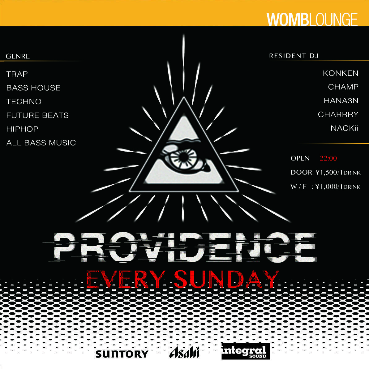 曜日の夜に、東京のナイトライフに現れた世界基準の新感覚パーティーが開かれる。もはや世界標準の HIP HOP から派生した TRAP、FUTURE BASS や新定番の BASS HOUSE、FUTURE HOUSE など BASS MUSIC を中心に世界のトレンドを同じスピードで体感できる唯一無二のイベント、PROVIDENCE。このイベントに導かれた貴方は既存のクラブに物足りないと感じていた何かが見つかる。エッジ―な選曲、ファッショナブルなオーディエンス、華やかなコミュニティー。この PROVIDENCE が東京のナイトライフの新定番になる日もそう遠くない。