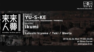 月頭の月曜からテクノやハウスなどを聴きながら 一ヶ月の英気を養うコンセプトのイベント! ゲストDJは都市型テクノフェス「LALLAPALOOZA」オーガナイザーのYU-S-KE、 ゲストライブには新進気鋭トラックメーカーのikumiを招聘!!!