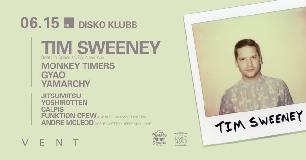 世界中の優良なDJ/プロデューサーを毎週のゲストに迎え、来年には20周年を迎えるNY発のダンスミュージック専門ラジオ番組Beats in Spaceを主催するDJにしてDFAクルーでもあるTim SweeneyがMONKEY TIMERS主催のDISKO KLUBBに待望の出演。