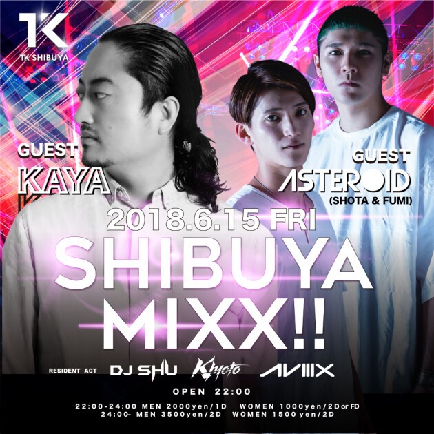 毎週末開催!TK SHIBUYAが誇る週末看板パーティー! LED ロボット,GOGOダンサー,ポールダンサー、度肝を抜く空間演出に加え、各地で活躍する豪華GUEST DJを招いて毎週末1500名規模のオーディエンスが熱狂するSHIBUYA MIXX!!