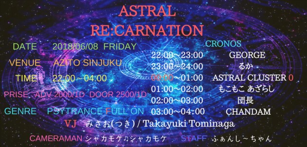 2018/06/08 (金) 新宿azitoにて夜の22:00~4:00にPSYTRANCE FULLONのDJイベントを開催致します。何卒、宜しくお願い致します (^_-)-☆
