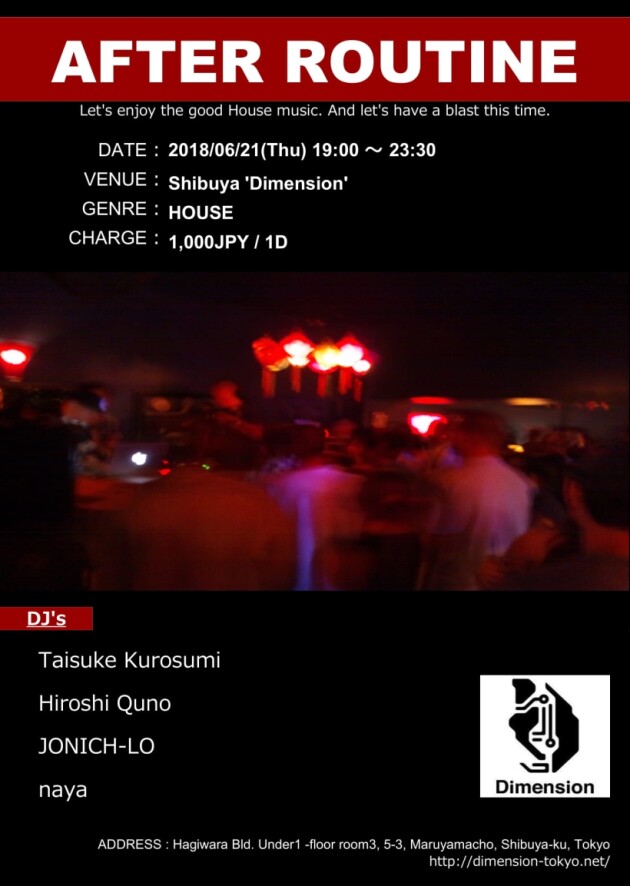 平日の夜。渋谷Dimensionで飲めて踊れるHOUSEイベント開催です。