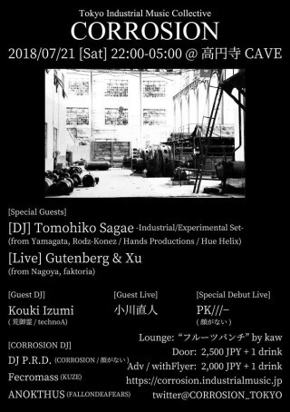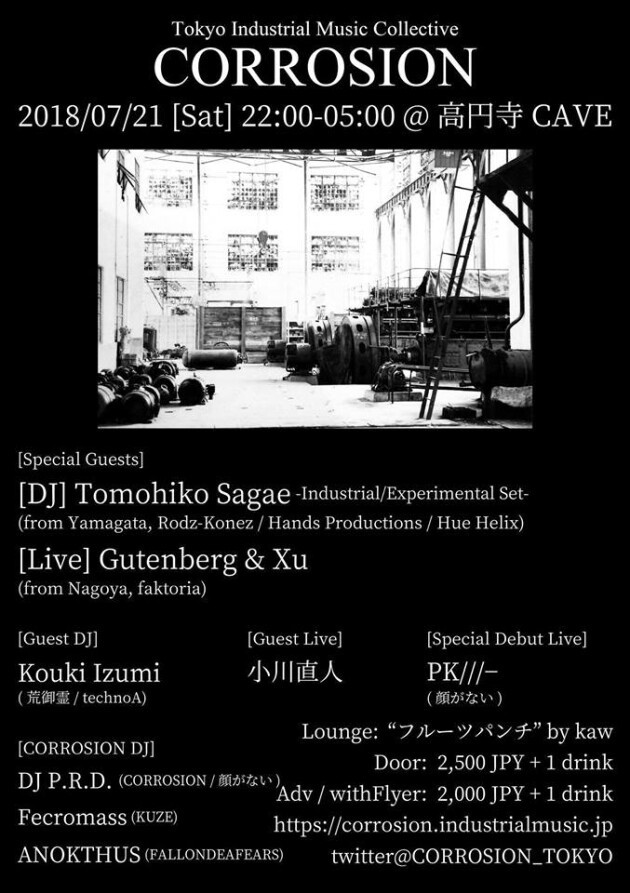 新体制で2018年初開催となるCORROSIONは名門Hands Productionsから日本人初のリリースを果たし各国の地下シーンで存在感を強めているTomohiko Sagae氏を山形から、