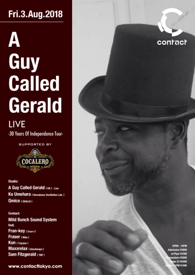 そんなA Guy Called Geraldが "30 Years of Independence"と題したツアー先としてチョイスしたのがContactだ。Studio Xフロアにて、長く多様なキャリアの深みと幅に裏付けられたライブパフォーマンスを披露する。これまでに彼が切り開いてきた数多くのスタイルやサウンドを聞かせてくれるに違いない。そう、それは1988年のセカンド・サマー・オブ・ラブから脈々と続くエレクトロニックミュージックの、偉大なる文化と進化の祝宴と言っていいだろう。