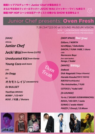韓国トッププロデューサー”Junior Chef”が緊急来日!! さらに今注目のフィメールラッパー”JVCKI WAI(ジャッキー・ワイ)”も来日!! 韓国HIP HOPシーンの注目アーティストの稀少なSHOWを目撃せよ!!