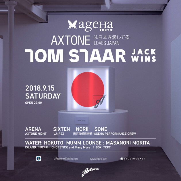 日本でも抜群の人気を誇るTom Staarが2年ぶりにageHaに登場。Axtoneの一押しアーティストJack Winsも共に来日を果たす。