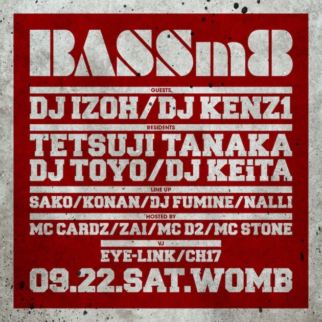 めまぐるしく流行が移りゆく現在のダンスミュージックシーンの中、イギリスを発祥とする唯一無二の音楽「ドラムンベース」。今もなおその重低音と高速で駆け抜けるビートに魅了され世界中にヘッズの絶えないこの音楽の魅力をより多くの人に届けるため、シーンの未来を導くパーティー”BASSm8” (ベースメイト)のWOMBレギュラーが9月第4土曜日に開催!!!