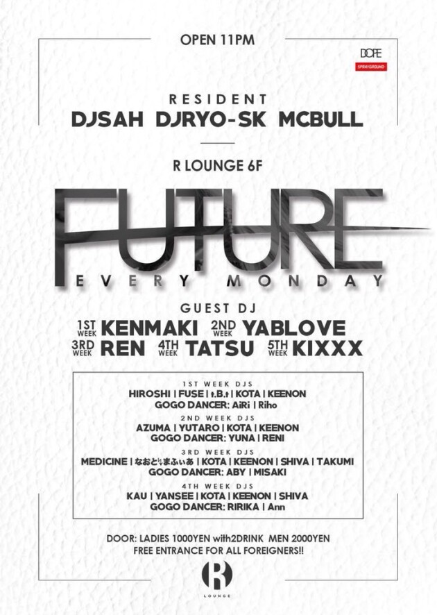 ENTRANCE (MEN) ¥2,000 / 1D (WOMEN) ¥1,000 / 2D