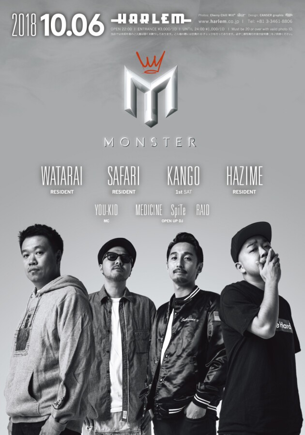 日本のHIP HOP SCENEを代表するDJが一堂に介する土曜日"MONSTER"。
