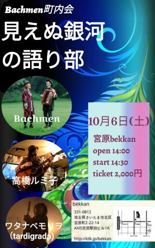 [open]14:00 [start] 14:30 [チケット]2,000円 小学生以下無料 [出演者] ◆高橋ルミ子 ◆ワタナベモリヲ(tardigrada) ◆Bachmen