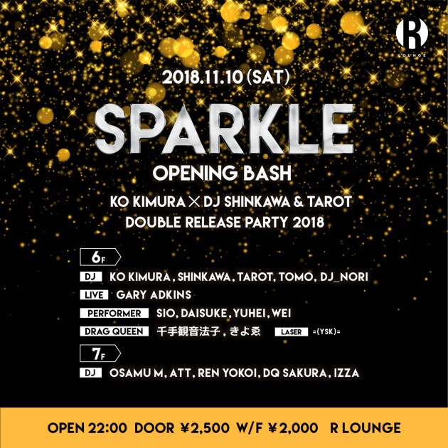 R LOUNGEにてニューパーティ『SPARKLE』がスタート! KO KIMURA、そして、DJ SHINKAWA & TAROTそれぞれのニューアルバムリリースパーティとの豪華コラボレーション!